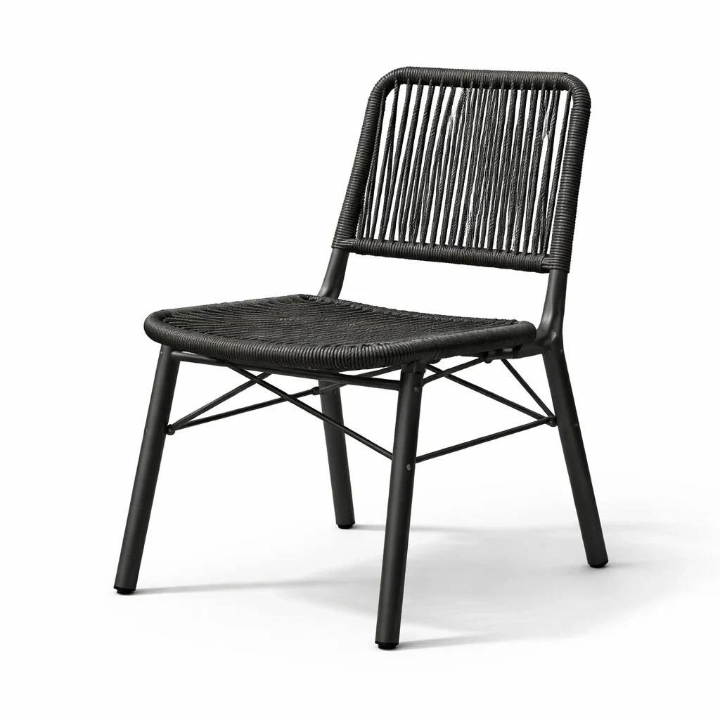 Chaise à manger noire en métal et polyester pour intérieur et extérieur
