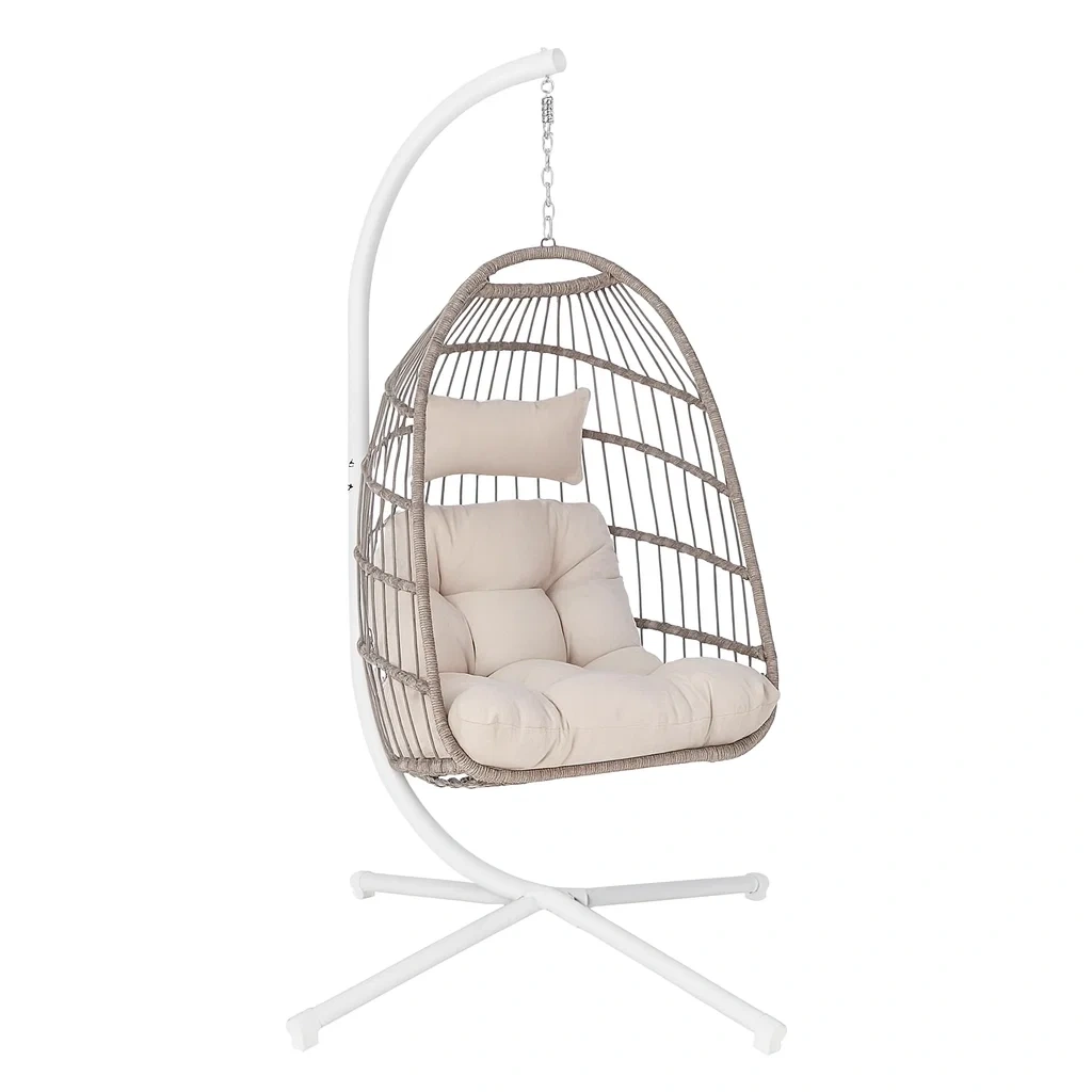 Chaise longue en rotin beige avec coussin en coton et polyester