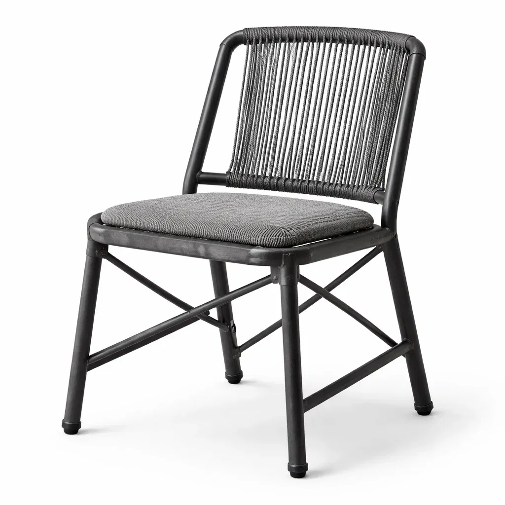 Chaise à manger noire en métal et polyester pour intérieur et extérieur