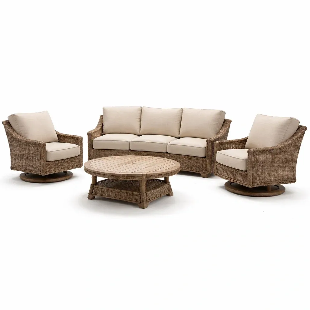 Ensemble de canapés de mobilier d'extérieur en rotin synthétique avec coussins en polyester et table en bois